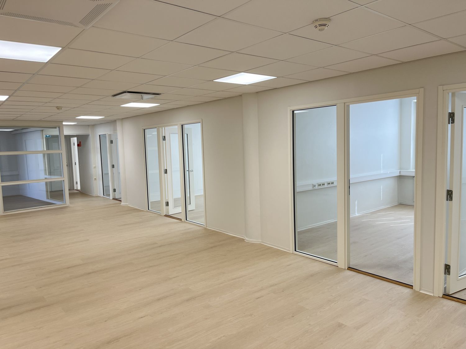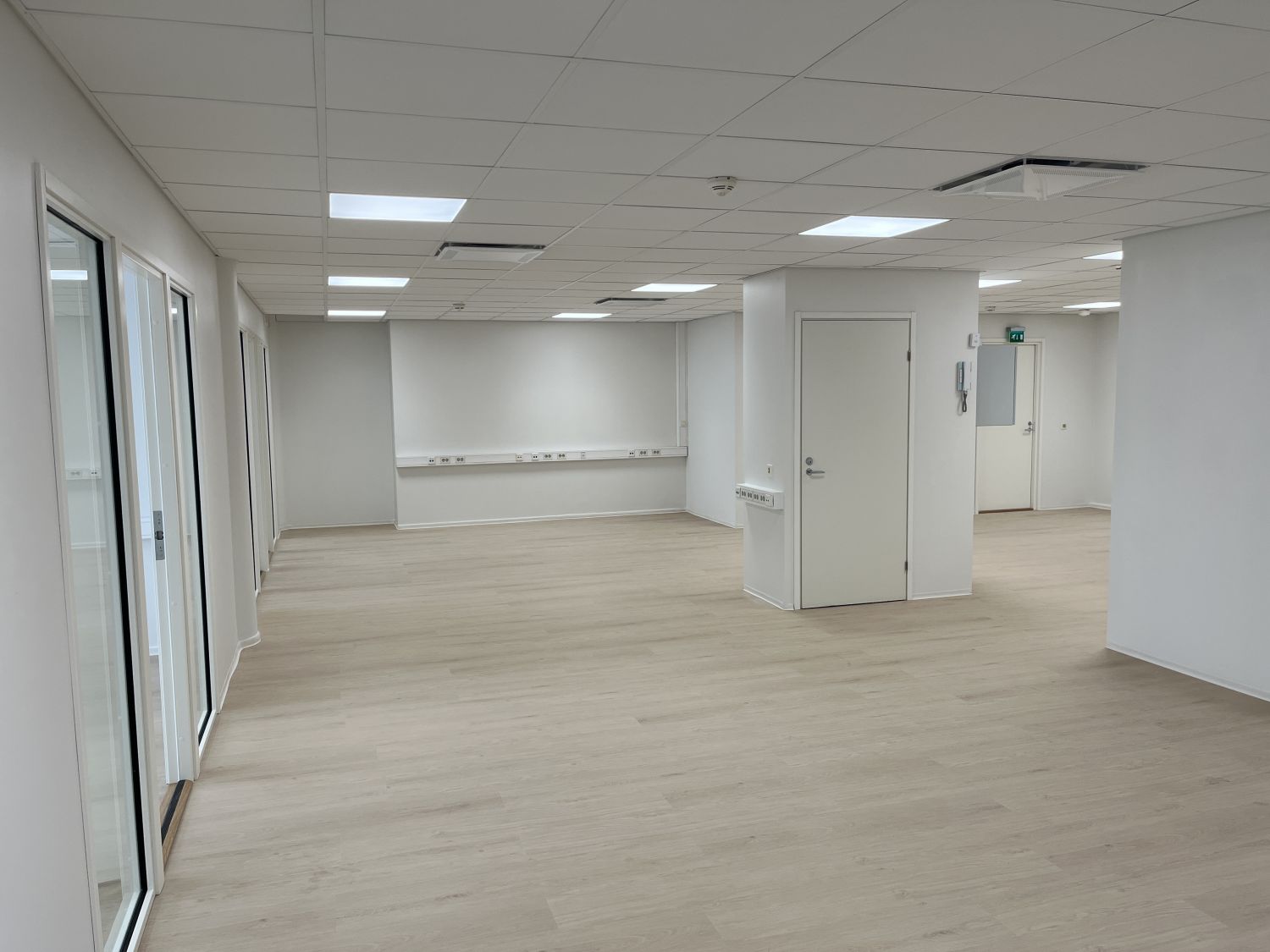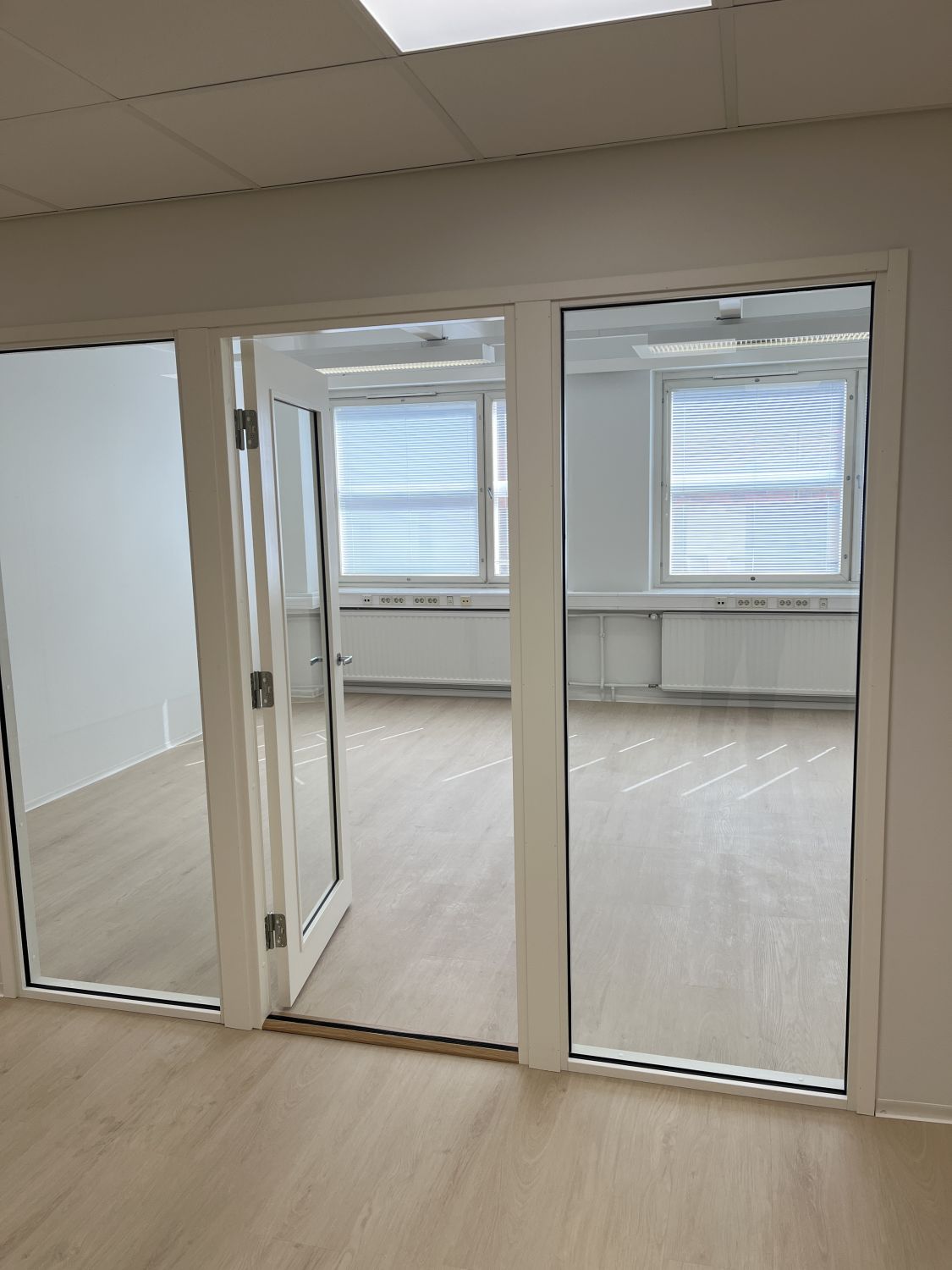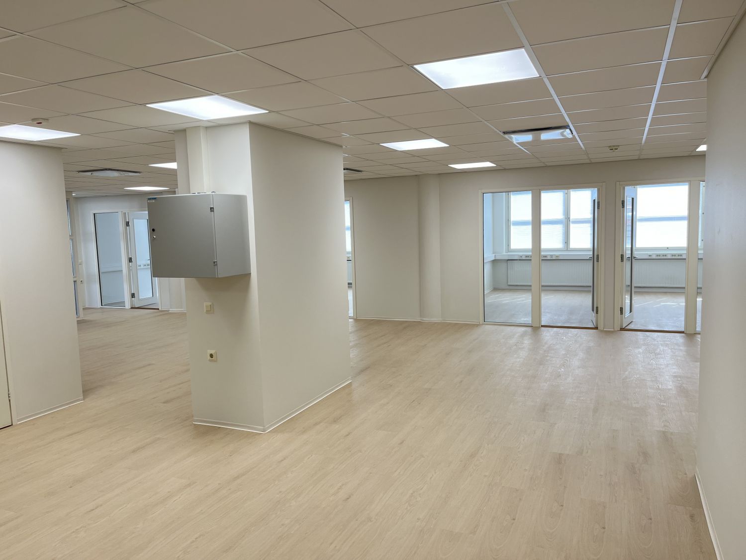 Layout sisältää avaran aulan, ison tiimihuoneen, neljä erillishuonetta sekä kaksi wc-tilaa.