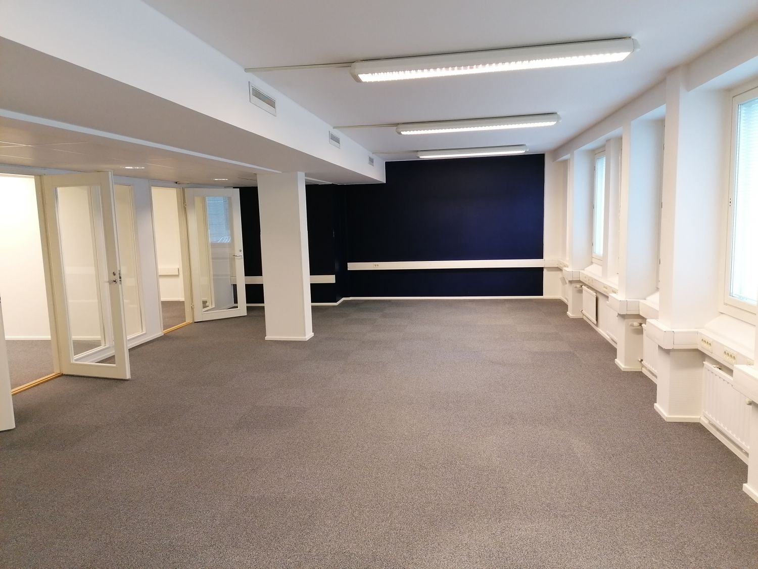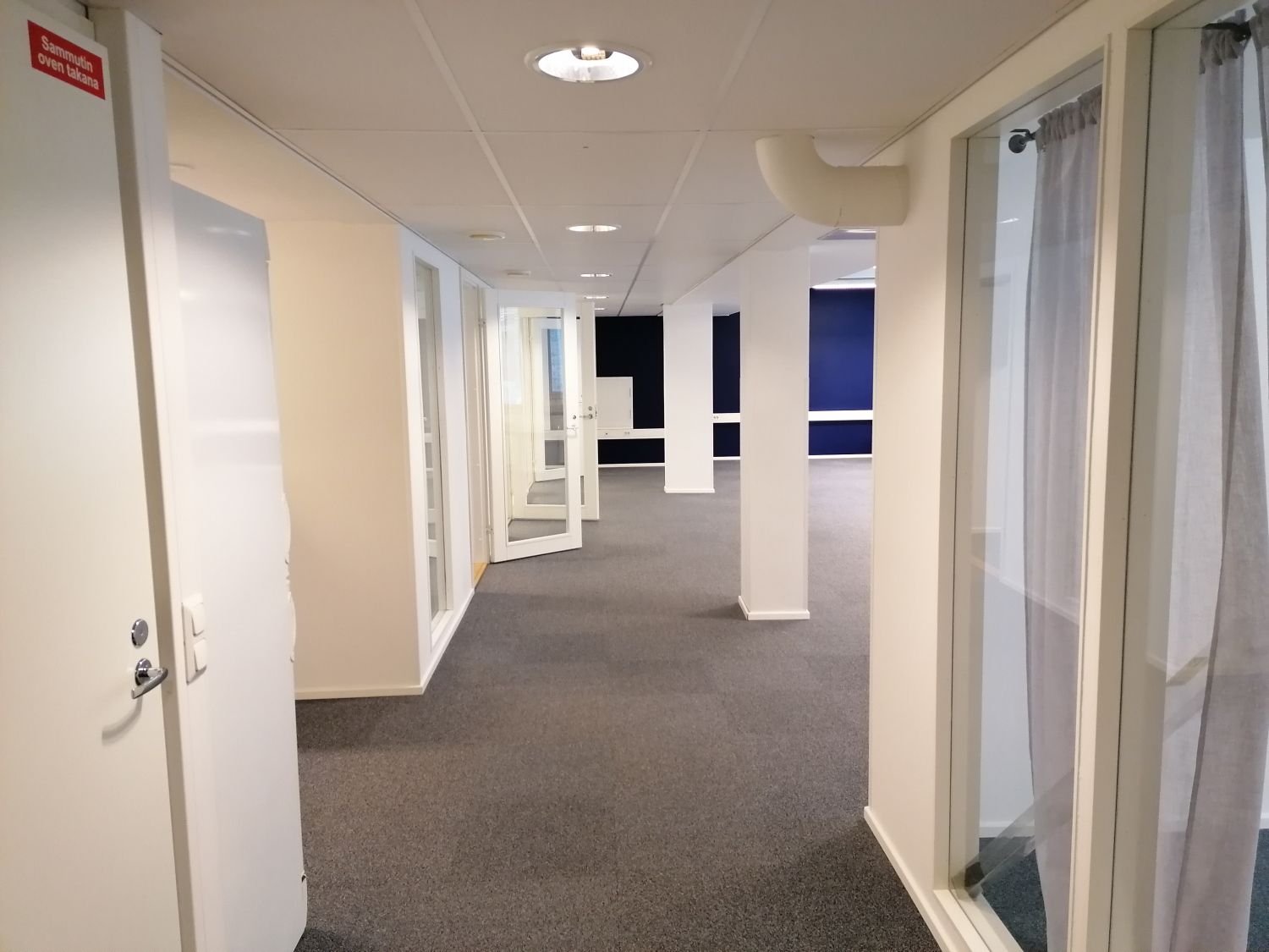 Lattiapinnoitteena on palamatto, joka osaltaan parantaa tilan akustiikkaa.